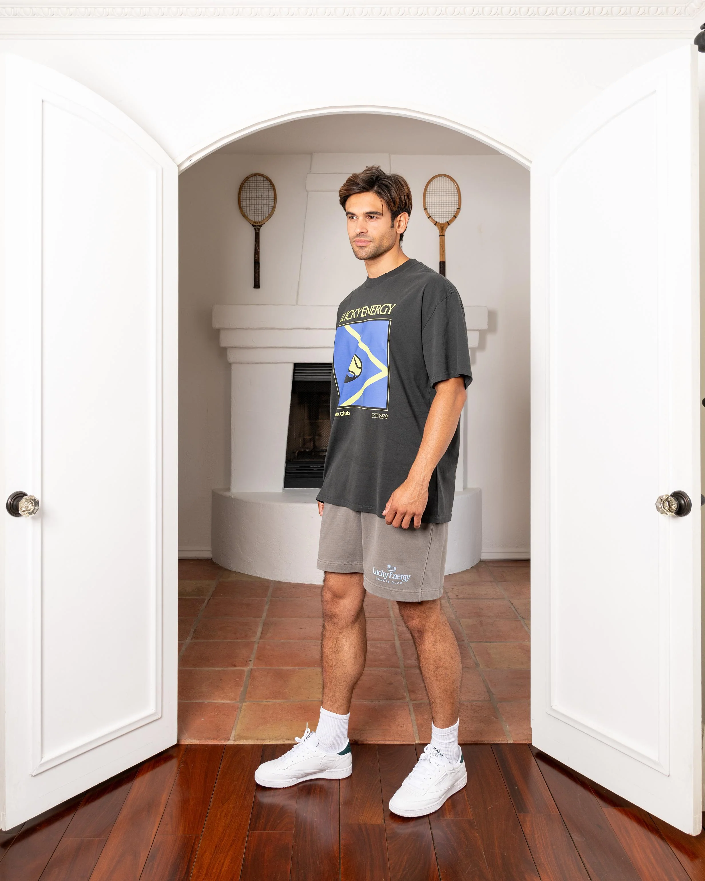 The fit is relaxed yet refined, draping cleanly across the shoulders and chest, with a ribbed neckline that retains its shape wear after wear. The garment-dyed finish lends a subtle, premium fade for a lived‑in look from day one. At its center, the heritage‑inspired Lucky Energy Tennis Club graphic makes a bold yet sophisticated statement, an homage to the brand’s roots.